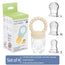 Con il nostro morditore di frutta, il tuo bambino può esplorare in sicurezza nuovi sapori. La morbida punta in silicone permette solo piccoli pezzi sicuri, rendendolo ideale per le prime esperienze con frutta e verdura. Allo stesso tempo, succhiare ha un effetto lenitivo durante la dentizione. Perfetto per promuovere abitudini alimentari sane – e attualmente disponibile con Acquista 1 e Ricevi 1 GRATIS!