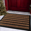 Questo tappetino d'ingresso di alta qualità è la scelta ideale per qualsiasi casa. Il design robusto e antiscivolo previene lo spostamento, e le fibre di cocco durevoli assorbono efficacemente sporco e umidità. Con un elegante motivo a righe e un bordo nero, questo tappetino completa perfettamente la tua porta d'ingresso mentre aiuta a mantenere la tua casa pulita. Facile da mantenere, basta spazzolarlo o sciacquarlo con un tubo per un aspetto fresco.