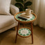 Questo tavolino doppio combina artigianato e funzionalità attraverso il motivo artistico a mosaico sul piano del tavolo. Il robusto rattan e legno offrono un aspetto durevole e naturale. Grazie al doppio livello, hai spazio di stoccaggio extra, ideale per il soggiorno o la terrazza. Aggiungi un tocco unico al tuo interno con questo pezzo d'arredo speciale.
