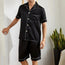 Scappa verso il massimo comfort con questo fresco e leggero set pigiama per uomo. Il set, ideale sia per dormire che per rilassarsi, combina una camicia con bottoni a maniche corte e pantaloni corti abbinati. Realizzato in tessuto traspirante, questo set è un must per le calde notti estive.